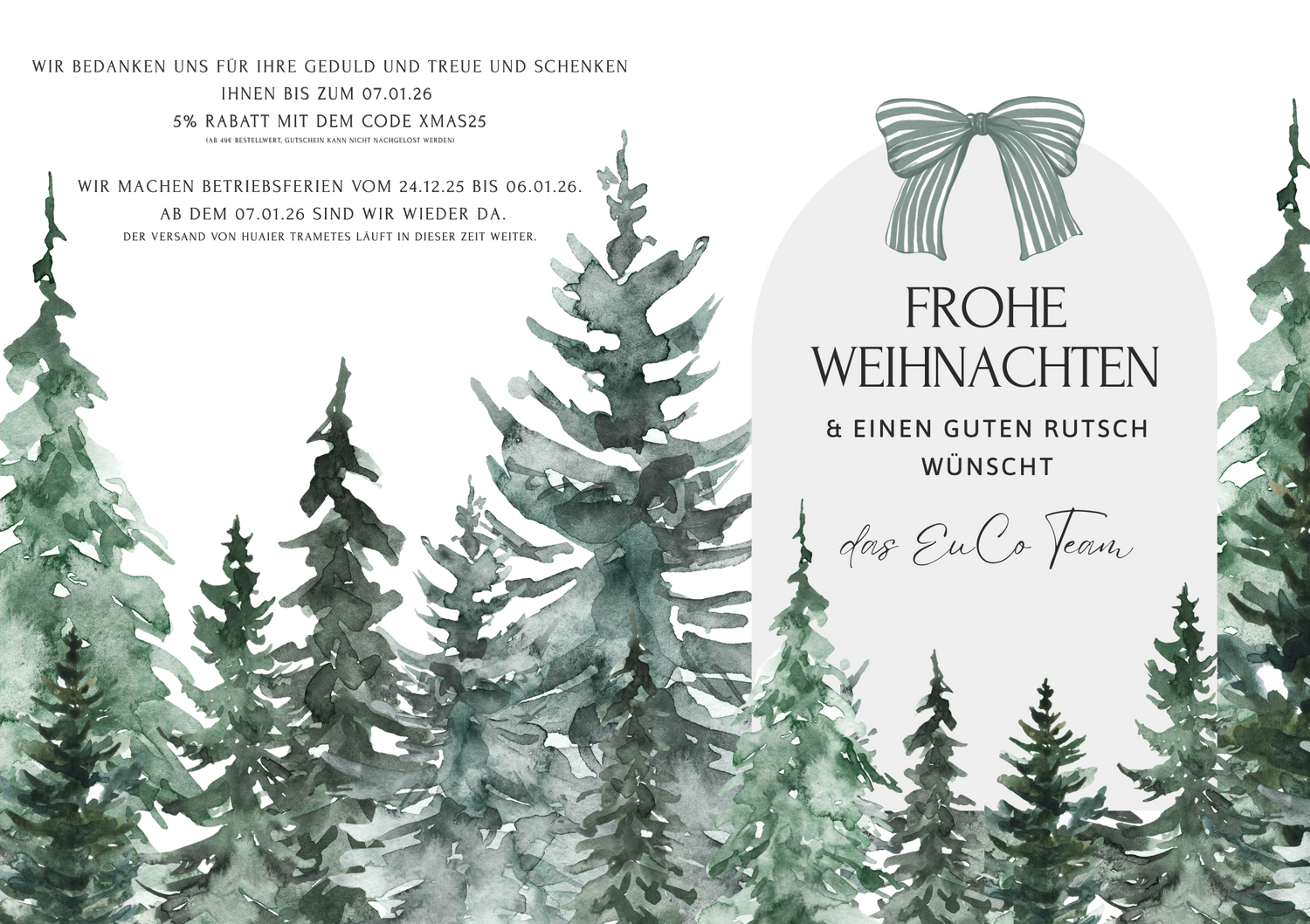 WIR BEDANKEN UNS FÜR IHRE GEDULD UND TREUE UND SCHENKEN IHNEN BIS ZUM 07.01.26